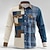 Men's Geometric Color Block Patchwork Shirt Button Up Shirt Long Sleeve Fashion Casual Outdoor Dailywear Spring Fall Turndown Front Two Pockets Linen Like Shirt Blue Brown Gray