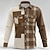 Men's Geometric Color Block Patchwork Shirt Waffle Shirt Casual Shirt Long Sleeve Fashion Casual Dailywear Holiday Summer Spring Turndown 3D Print Textured Button Up Shirts Brown Khaki Gray
