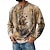Men's Graphic Animal Henley Shirt Long Sleeve Fashion Daily Retro Vintage Casual Holiday Going out Fall Spring & Fall Fall & Winter Blue Purple Khaki Gray Henley Henley T-Shirt