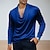 Men's Shirt Silk Like Satin Shirt Casual Shirt Plain Casual Daily Black White Royal Blue Gold Long Sleeve Cowl Neck Spring Spring & Fall Clothing Apparel Ruched