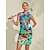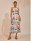 Vacation Geometric Floral Print Waist-cinching Sleeveless Satin Maxi Dress
