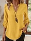 Women's Shirt Blouse Solid Color Casual Long Sleeve V Neck Regular Tops Daily Holiday Going out Pocket Blue Yellow Purple Green Khaki Summer Spring