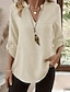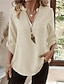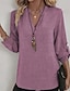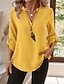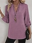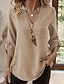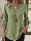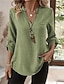 Women's Summer Tops Blouse Dressy Tops Solid Color Plain Elegant Vintage Ladies 3/4 Length Sleeve Shirt Collar Regular Tops Daily Work Going out Ruched Patchwork Pocket Blue Yellow Purple Green Khaki