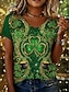 St. Patrick's Day Women's T Shirt Graphic Shamrock Vintage Stylish Classic Short Sleeve V Neck Regular Tops Daily Weekend Vacation Wear Print Green Summer Spring