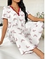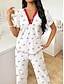 Women's Pajama Set Casual Comfort Heart Elastic Waist Pant Daily Home Short Sleeve V Neck White Wine Red Fuchsia Summer Spring Loose Fit