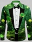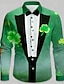 St. Patrick's Day Men's Shamrock Faux Collar and Suit Design Celtic Art Shirt Button Up Shirt Long Sleeve Vintage Retro Party Holiday Spring Fall Turndown 3D Print Collared Shirts Green 1# Light