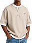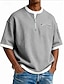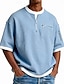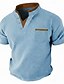 Men's Waffle Knit Tee Tee Top Short Sleeve V Neck Mandarin Collar Summer Spring All Seasons Solid Color Color Block Fashion Designer Casual Buttons Fake two piece Casual Daily Outdoor Light Blue Army