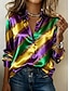Mardi Gras Women's Shirt Graphic Geometric Vintage Stylish Modern Long Sleeve Shirt Collar Regular Tops Daily Holiday Yellow Light Purple Purple Gold Green Summer Spring