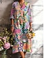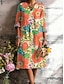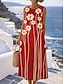 Women's Midi Dress Sundress A Line Dress Vacation Casual Boho Holiday Loose Fit Floral Graphic Color Block Long Sleeve V Neck Pink Orange Green Summer Spring