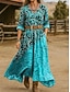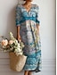 Women's Maxi Dress Boho Dress Vintage Dress Casual Dress Vintage Daily Outdoor Vacation Loose Fit Geometric Long Sleeve V Neck Blue Spring Autumn