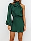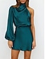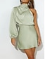 Women's Mini Dress Satin Dress Party Dress Cocktail Dress Sheath Dress Elegant Fashion Party Cocktail Party Date Regular Fit Plain Long Sleeve Stand Collar Aqua Blue Black Light Green Dark Green