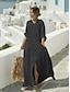 Women's Knee Length Dress Faux Cotton Linen Fashion Modern Daily Outdoor Vacation Loose Fit Plain Short Sleeve Shirt Collar Black White Yellow Green Summer Spring