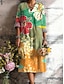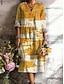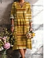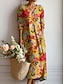 Women's Midi Dress Sundress A Line Dress Vacation Vintage Casual Beach Party Regular Fit Floral Graphic Long Sleeve V Neck Yellow Pink Orange Khaki Summer Spring