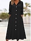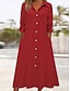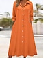 Women's Midi Dress Shirt Dress Faux Cotton Linen Dress Casual Dress A Line Dress Fashion Basic Modern Daily Vacation Going out Regular Fit Plain Long Sleeve Shirt Collar Blue Black Wine Orange Spring