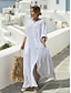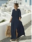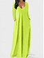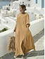 Women's Maxi Dress Faux Cotton Linen Cotton Linen Dress Fashion Modern Daily Outdoor Vacation Loose Fit Plain Long Sleeve V Neck Black White Yellow Navy Blue Summer Spring