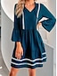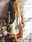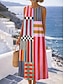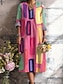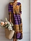 Women's Midi Dress Sundress A Line Dress Vacation Casual Boho Holiday Loose Fit Graphic Color Block Abstract Long Sleeve V Neck Blue Purple Orange Summer Spring