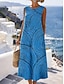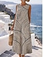 Women's Midi Dress Shift Dress Sundress A Line Dress Vacation Casual Boho Beach Party Loose Fit Graphic Geometric Sleeveless Crew Neck Blue Purple Green Khaki Summer Spring