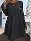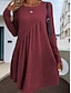 Women's Knee Length Dress Boho Dress Casual Dress Elegant Fashion Modern Outdoor Vacation Going out Regular Fit Plain Long Sleeve Crew Neck Black Burgundy Royal Blue Khaki Spring Fall