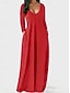 Women's Maxi Dress Shirt Dress Casual Dress Elegant Fashion Modern Outdoor Vacation Going out Loose Fit Plain Long Sleeve V Neck Black Red Royal Blue Brown Spring Fall