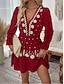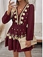 Women's Mini Dress Boho Dress Casual Dress Elegant Fashion Modern Outdoor Vacation Going out Regular Fit Floral Long Sleeve V Neck Black Wine Red Green Summer Spring