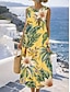 Women's Midi Dress Shift Dress Sundress A Line Dress Vacation Casual Boho Beach Party Regular Fit Floral Graphic Sleeveless Crew Neck Yellow Pink Green Summer Spring