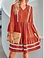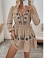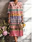 Women's Knee Length Dress Sundress A Line Dress Vacation Casual Boho Beach Party Loose Fit Graphic Geometric Abstract Long Sleeve V Neck Pink Purple Green Khaki Summer Spring