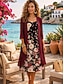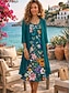Women's Dress Set A Line Dress Elegant Vacation Floral Graphic Layered Print Midi Dress Half Sleeve Crew Neck Daily Blue Wine Green Summer Spring Loose Fit
