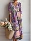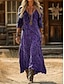 Women's Maxi Dress Boho Dress Vintage Dress Casual Dress Vintage Daily Outdoor Vacation Loose Fit Floral Long Sleeve V Neck Purple Spring Autumn