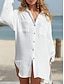 Women's Mini Dress Shift Dress Casual Daily Loose Fit Plain Long Sleeve Lapel White Summer Spring Fall