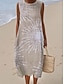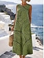 Women's Midi Dress Shift Dress Sundress Vacation Casual Boho Beach Party Loose Fit Graphic Geometric Sleeveless Crew Neck Blue Purple Green Khaki Summer Spring