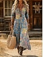 Women's Maxi Dress Boho Dress Vintage Dress Casual Dress Vintage Daily Outdoor Vacation Regular Fit Floral Paisley Long Sleeve V Neck Blue Spring Autumn
