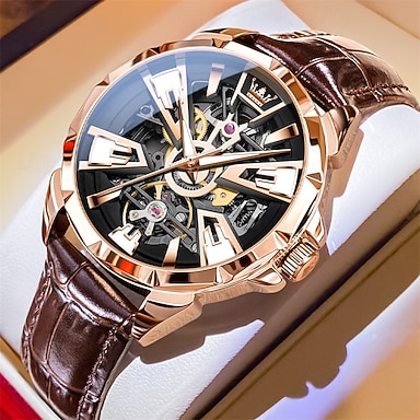 New Olevs Brand Men'S Business Watch Decoration, Luminous Hollow Mechanical Watch Hub Perspective Casual Water-Resistant Sports Wristwatch