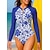 Women's Standard Rash Guard Bathing Suit Athletic Swimwear Floral Leopard Color-blocking UV Sun Protection UPF50+ UV Protection Long Sleeve Swimwear Bodysuit Removable Pad Front Zip Boyleg Surfing