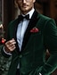 Men's Christmas Party Velvet Suit Peaked Lapel Black Green Christmas Party Solid Colored Tailored Fit 3 Piece Single Breasted Two-buttons