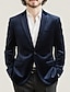 Men's Velvet Blazer Notch Collar Fashion Classic Casual Solid Colored Velvet Blazer Black Burgundy Dark Blue Tailored Fit Single Breasted One-button
