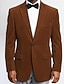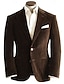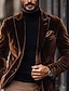 Men's Velvet Blazer Closure collar Vintage Fashion Casual Solid Colored Blazer Brown Tailored Fit Single Breasted Two-buttons
