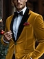 Men's Business Casual Velvet Suit Notch Lapel Black Yellow Daily Business Solid Colored Tailored Fit 2 Piece Single Breasted Two-buttons