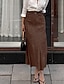 Women's Elegant Vintage Midi Mid Rise Skirts Plain Ruched Micro-elastic Vacation Street Brown Fall Spandex