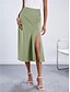 Women's Fashion Casual Midi High Waist Skirts Plain Pocket Stretchy Daily Street Black Khaki Spring Polyester