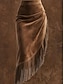 Women's Faux Suede Skirt Vintage Fashion Casual Asymmetrical Mid Rise Skirts Plain Tassel Fringe Inelastic Street Going out Brown Summer Polyester
