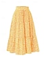 Women's Fashion Casual Midi Mid Rise Skirts Floral Ruched Drawstring Micro-elastic Daily Street Yellow Red Green Summer Spandex Polyester