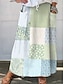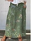 Women's Casual Maxi Mid Linen Like Waist Skirts Floral Patchwork Inelastic Daily Vacation Blue Green Summer Polyester