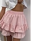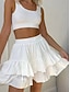 Women's Vacation Skirt Fashion Casual Mini High Waist Skirts Plain Ruffle Ruffled Micro-elastic Daily Beach White Summer Polyester
