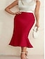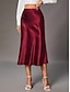 Women's Elegant Fashion Knee-length Mid Rise Skirts Plain Ruched Inelastic Street Going out Champagne Red Summer Satin