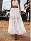 Women's Lace Skirt Fashion Casual Boho Maxi High Waist Skirts Solid Colored Lace Patchwork Micro-elastic Daily Date White Summer Cotton