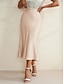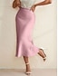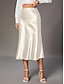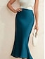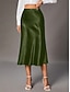 Women's Elegant Fashion Midi High Waist Skirts Plain Pocket Micro-elastic Cocktail Party Date Blue Black Green Summer Satin