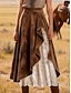 Women's Elegant Vintage Fashion Casual Maxi Mid Rise Skirts Plain Ruched Patchwork Inelastic Daily Beach Gold Summer Polyester