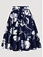 Women's Vacation Skirt Fashion Basic Mini High Waist Skirts Floral Elastic Waistband Stretchy Daily Gym Blue Summer Polyester