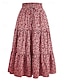 Women's Vacation Skirt Bohemia Vintage Casual Maxi High Waist Skirts Plain Elastic Waist Flowy Stretchy Daily Beach Red Summer Cotton Linen