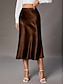 Women's Elegant Fashion Maxi High Waist Skirts Plain Drawstring Micro-elastic Party Date Wine Black Yellow Brown Spring Satin
